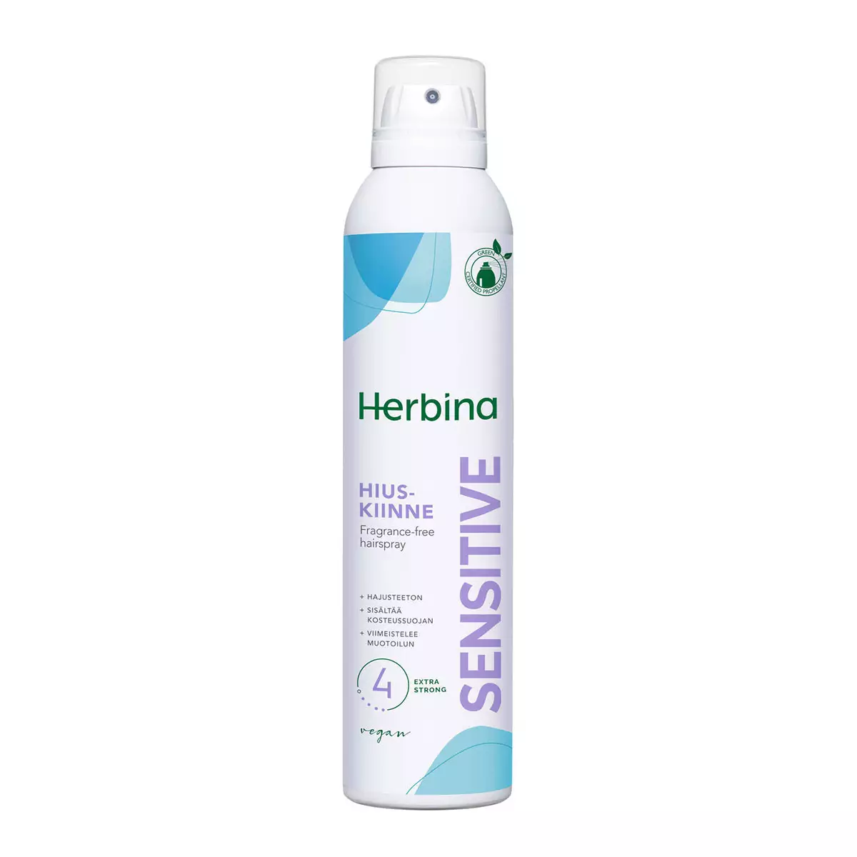 Herbina Sensitive hiuskiinne antaa hiuksille erittäin voimakkaan pidon ja viimeistelee kampauksen pitkäkestoisesti. Hajusteeton koostumus sopii erityisesti herkälle hiuspohjalle ja käyttäjille, jotka haluavat tehokkaan muotoilun ilman lisättyjä tuoksuja.