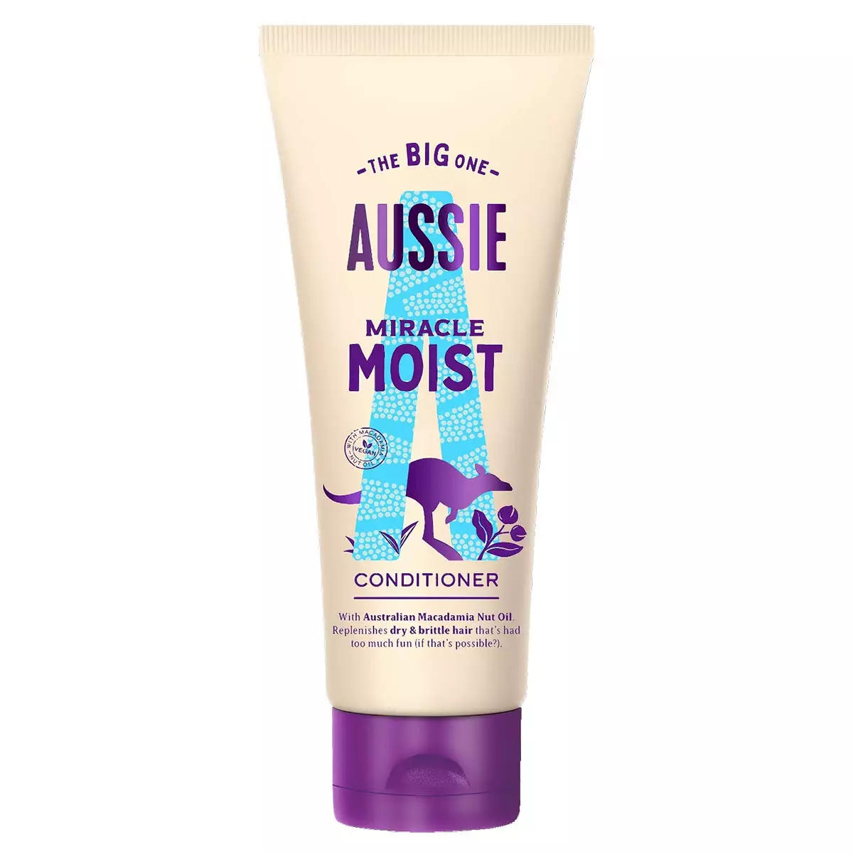 Hiukset kuivemmat kuin matkailija keskellä korpea? Tämä kosteuttava vegaaninen hoitoaine elvyttää ja palauttaa kosteuden kuiviin ja vaurioituneisiin hiuksiin. Aussie Miracle Moist Conditioner sisältää vegaanisen koostumuksen ja runsaasti australialaista makadamiapähkinäöljyä. Lisäksi sen tuoksu on ihastuttava. Hoitoaine antaa helpotusta kuiville ja hauraille hiuksille, jotka ovat kokeneet vähän liikaakin hauskanpitoa.