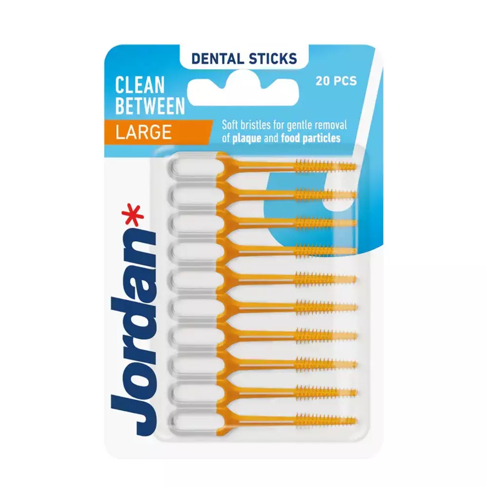 Jordan Clean Between -hammastikun pehmeät ja miellyttävät kumiharjakset liukuvat hammasväleihin helposti ja turvallisesti. Tikut hierovat hellästi ikeniä ja parantavat niiden verenkiertoa. Jordan Clean Between Large - L-kokoiset hammastikut, sopivat parhaiten leveille hammasväleille.