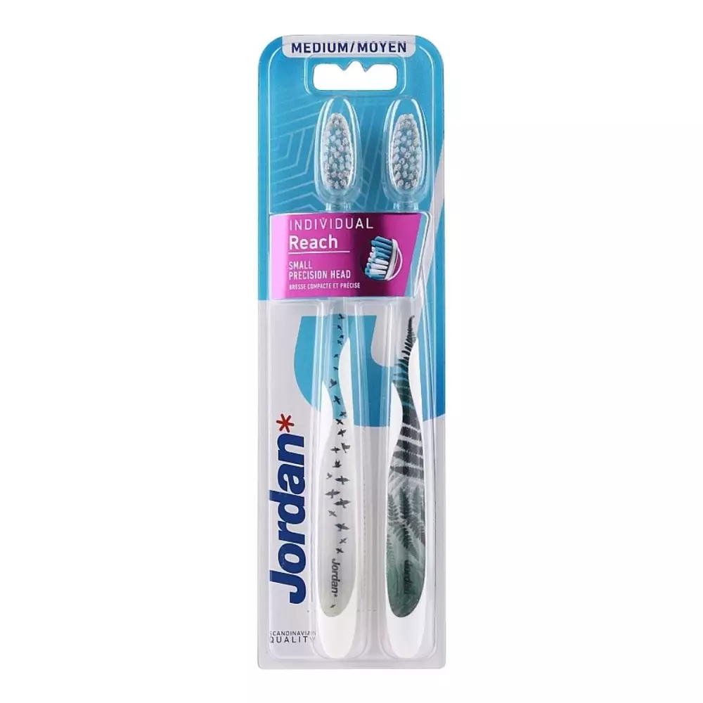 Jordan Individual Reach Medium hammasharjat on suunniteltu tarkkaan puhdistukseen, kun halutaan hieman jämäkämpi tuntuma harjaukseen. Pieni ja tarkka harjaspää helpottaa pääsyä vaikeisiin kohtiin, kuten takahampaisiin ja ienrajaan. Medium-harjakset puhdistavat hampaat tehokkaasti ja tukevat päivittäistä suunhoitoa. Ergonominen varsi tarjoaa hyvän otteen harjauksen aikana. Tuplapakkaus sopii hyvin kotikäyttöön tai matkalle.