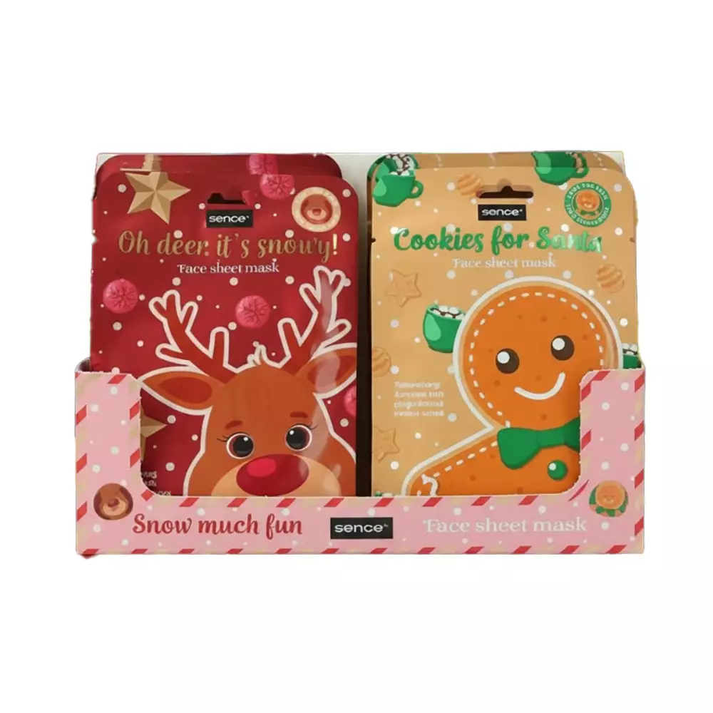 Sence Collection Snow Much Fun -kasvonaamio tuo iholle kosteutusta ja joulun iloa! Sarjan suloiset kasvonaamiot, kuten porateemainen “Oh deer, it’s snowy!” ja piparipoika-aiheinen “Cookies for Santa” hemmottelevat ihoa ja mieltä talven kylminä päivinä. Täydellinen lisä omaan rentoutumishetkeen tai hauska pikkulahja ystävälle.