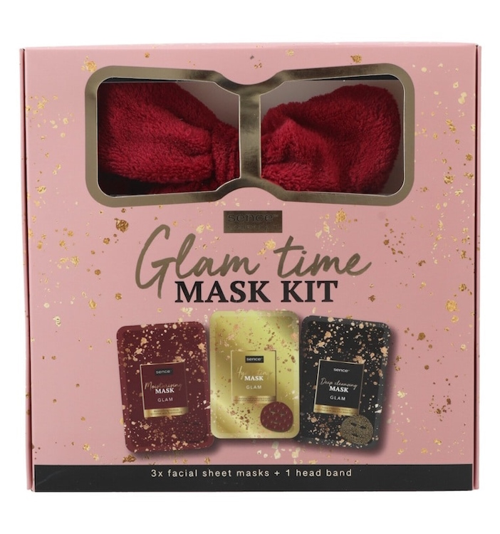 Lahjapakkaus 3 kasvomaskia+hiuspanta Glam Mask Kit