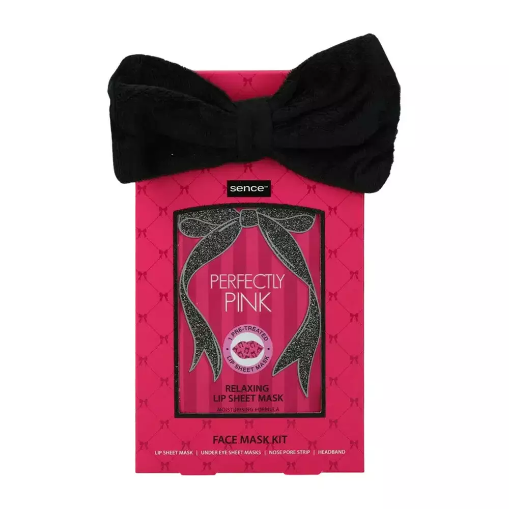 Sence Collection Glitz And Glam lahjapakkaus sisältää kasvojenhoitoon sopivan maskisetin sekä pehmeän hiuspannan. Setti sopii rentouttavaan hetkeen kotona. Pakkaus sisältää huulinaamion, silmänalusnaamiot ja nenänpuhdistusliuskan. Hiuspanta pitää hiukset poissa kasvoilta hoidon aikana.