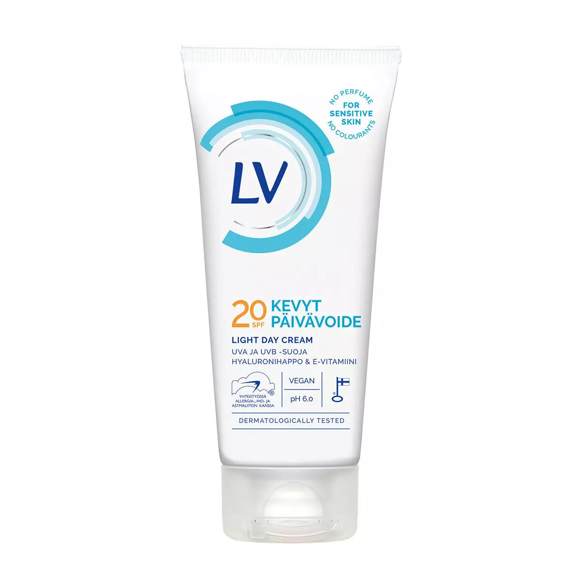 LV Suojaava kevyt päivävoide SPF 20 on nopeasti imeytyvä ja miellyttävän tuntuinen päivävoide herkälle iholle. Kevyt koostumus kosteuttaa tehokkaasti ja sopii hyvin päivittäiseen käyttöön sekä meikin alle.