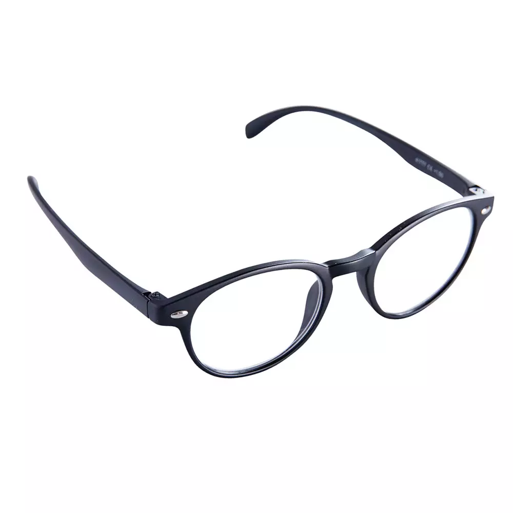 Hieman pyöreähkö lukulasimalli naisille. Väri: mattamusta. Vahvuus +3.00. Muovikehys. Turvallinen, suurentava apuväline ikänäköön.