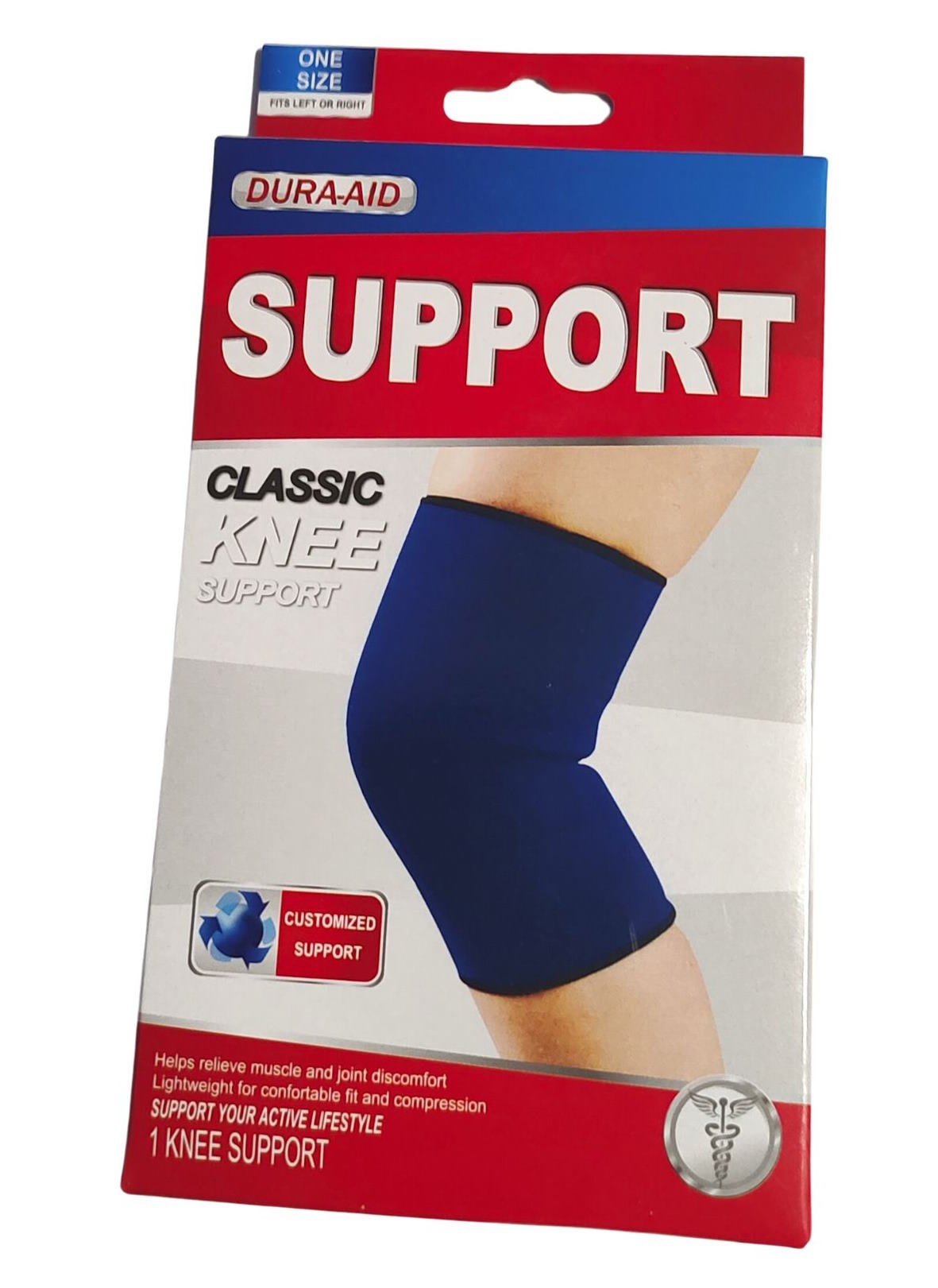 Perinteinen Dura-Aid polvituki soveltuu oikealle ja vasemmalle jalalle. Tukee niveltä ja lihaksia. Käsinpesu. Valmistettu puuvillasta ja kumista.