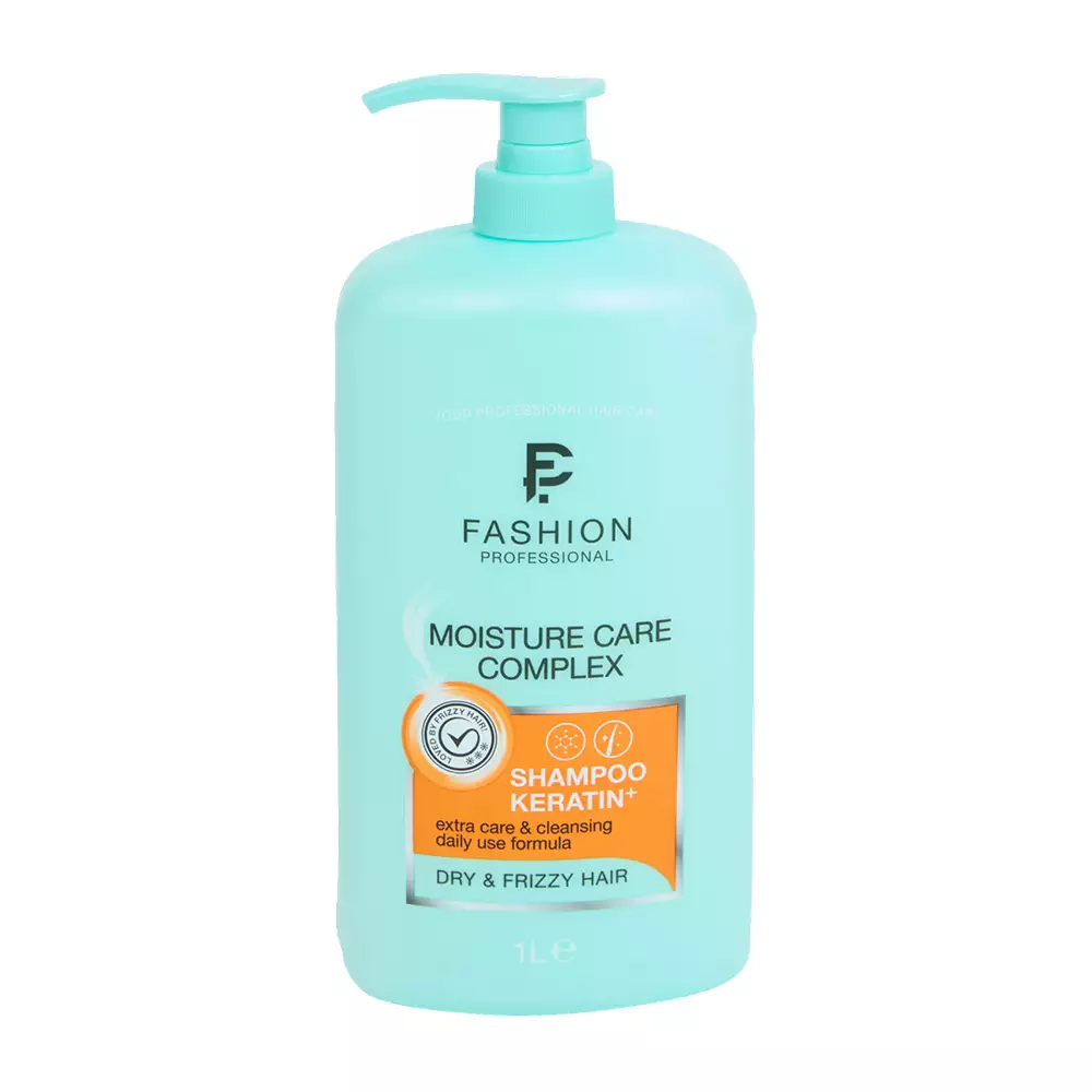 Fashion Professional Moisture Care Complex Keratin+ shampoo on suunniteltu kuivien ja pörröisten hiusten pesuun ja hoitoon. Koostumus kosteuttaa hiuksia tehokkaasti ja auttaa vähentämään karheutta sekä pörröisyyttä päivittäisessä käytössä. Hiukset jäävät pehmeämmän tuntuisiksi ja helpommin hallittaviksi pesun jälkeen.