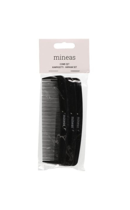 Pakkaus sisältää kolme samanlaista taskukampaa.