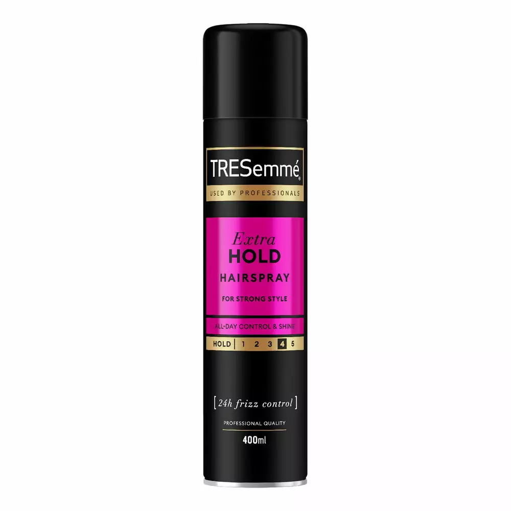 TRESemmé Extra Hold hiuskiinne auttaa viimeistelemään kampauksen ja pitämään hiukset hallinnassa koko päivän. Nopeasti kuivuva hiuslakka antaa vahvan pidon, joka pitää kampauksen paikoillaan ja auttaa hillitsemään irtohiuksia. Koostumus suojaa hiuksia myös kosteudelta, joten kampaus säilyy siistinä eri sääolosuhteissa.