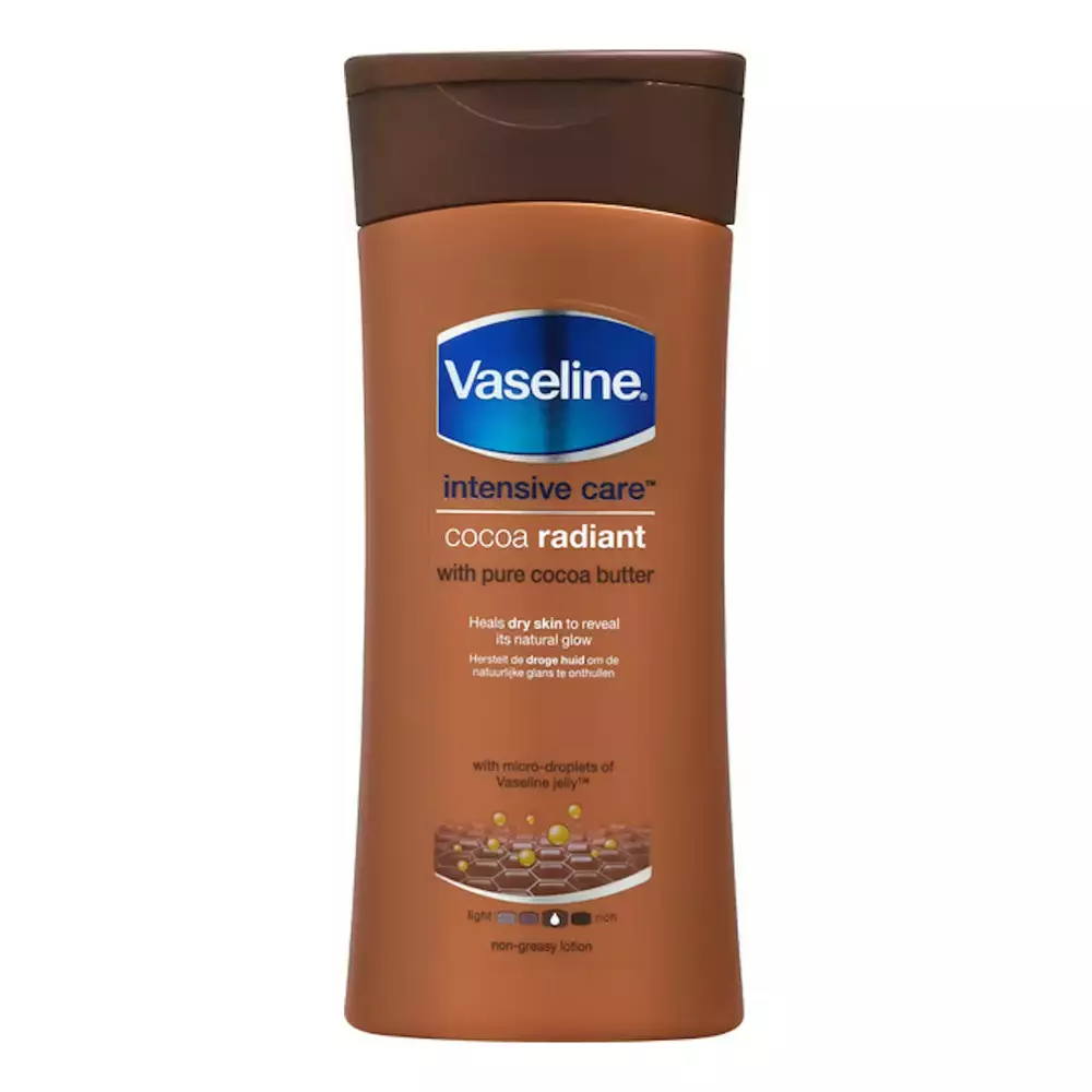 Vaseline Cocoa Radiant vartalovoide auttaa kosteuttamaan ihoa ja jättää sen pehmeän tuntuiseksi. Kaakaovoita sisältävä koostumus auttaa rauhoittamaan ihoa sekä tukemaan sen luonnollista kosteustasapainoa samalla kun se tuo iholle miellyttävän tuoksun.