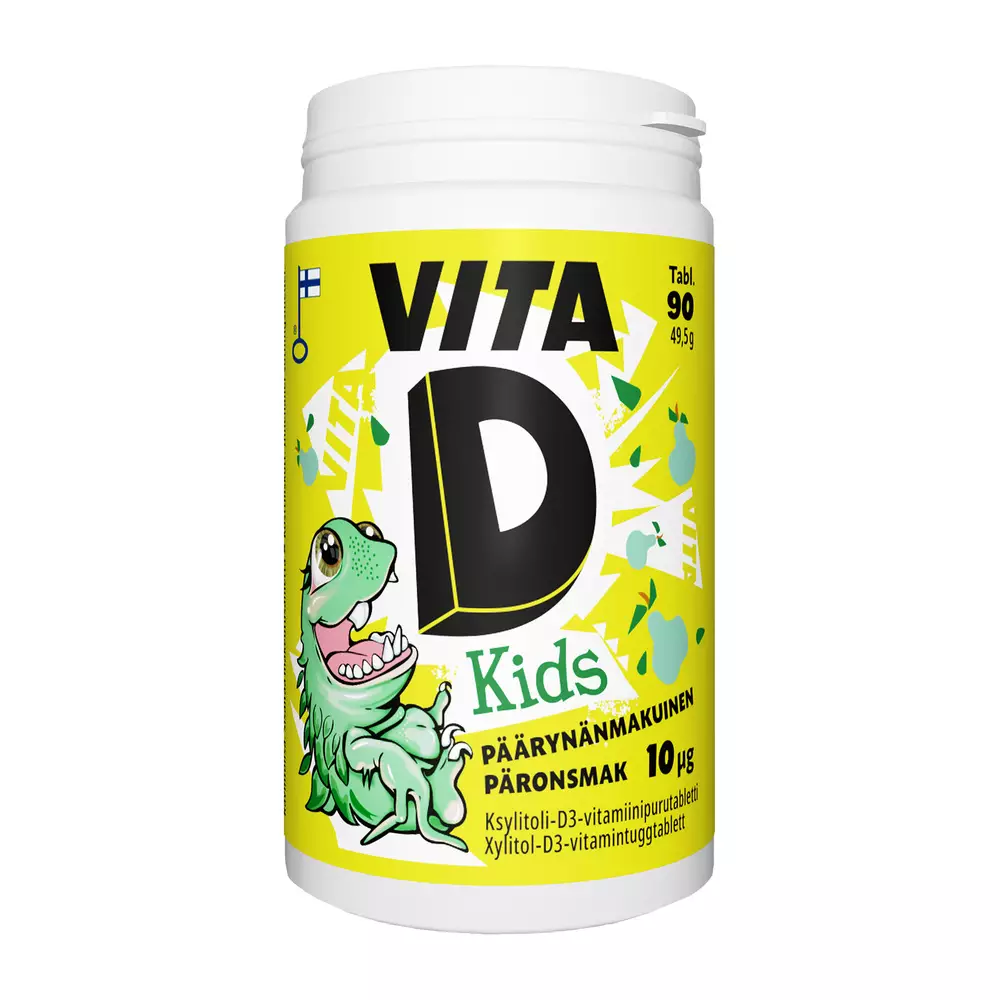 Vita D Kids on lapsille suunniteltu D-vitamiinivalmiste, joka tukee kasvua ja kehitystä. D-vitamiinia tarvitaan kalsiumin imeytymiseen sekä luuston ja lihasten normaaliin kehittymiseen. Päivittäinen D-vitamiinilisä on suositeltavaa ympäri vuoden. Helppokäyttöinen purutabletti sopii osaksi lapsen päivittäistä ruokavaliota ja tukee myös immuunijärjestelmän normaalia toimintaa.