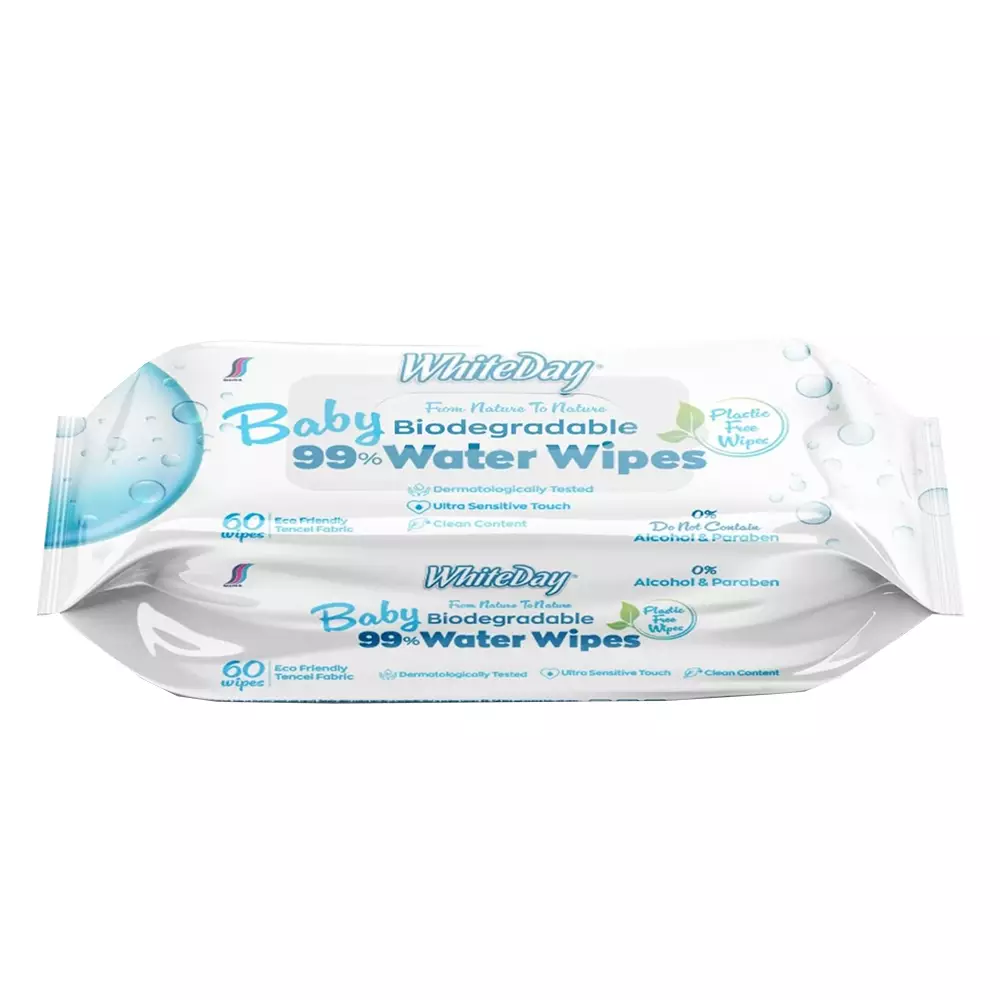 Whiteday hajusteeton ja biohajoava vauvanhoitopyyhe 60 kpl