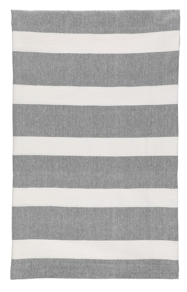 Raidallinen Anna-päiväpeite on valmistettu kierrätysmateriaalista. Väri harmaa/valkoinen. Koko 150x250cm, joka sopii parhaiten 80-90cm leveisiin sänkyihin. Materiaali 80% kierrätyspuuvilla, 20% polyesteri.
