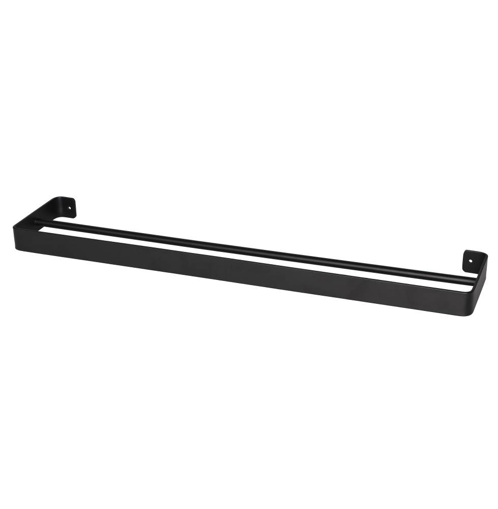 Musta metallinen pyyhetanko. Ruuveilla kiinnitettävä. Leveys 60 cm.