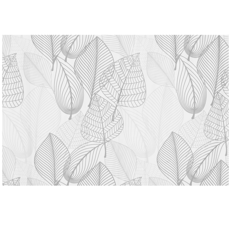 Lehtikuvioinen suihkuverho. Mukana 12 kpl ripustuskoukkua.