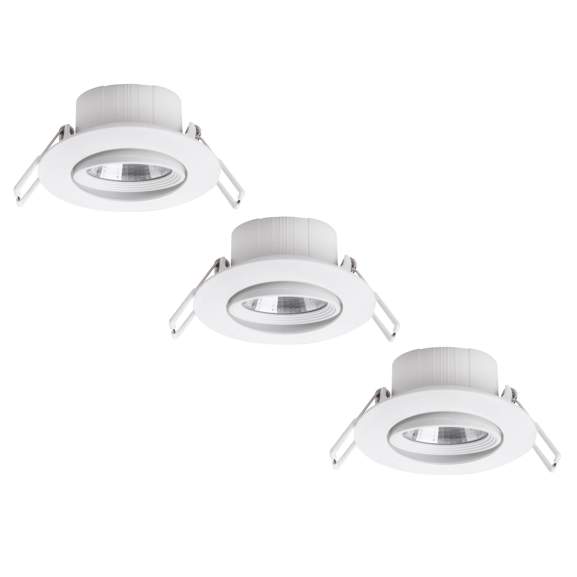 Pakkaus sisältää 3 kpl uppoasennettavia heijastimella varustettuja led-spottivalaisimia, joita voidaan suunnata 25°.