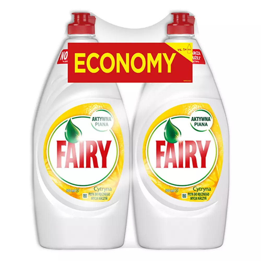 Fairy tiskiaine sopii päivittäiseen käsitiskaukseen ja poistaa rasvan ja lian tehokkaasti astioista. Tiivis koostumus riittää pitkälle ja sitruunan tuoksu tuo tiskaukseen raikkaan lopputuloksen. Riittoisa ja edullinen Economy pakkaus on käytännöllinen valinta, kun astioita pestään usein. Pakkaus sisältää kaksi 900 ml pulloa.