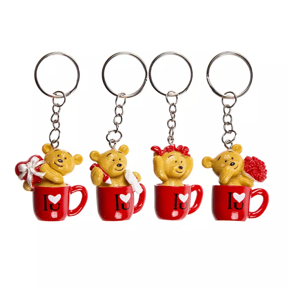 Söpö nalleaiheinen avaimenperä, jossa nalle istuu punaisessa mukissa. Mukissa on teksti ”I Love U”, ja nallehahmot ovat keskenään hieman erilaisia. Hauska ja pirteä yksityiskohta avaimiin, reppuun tai laukkuun.