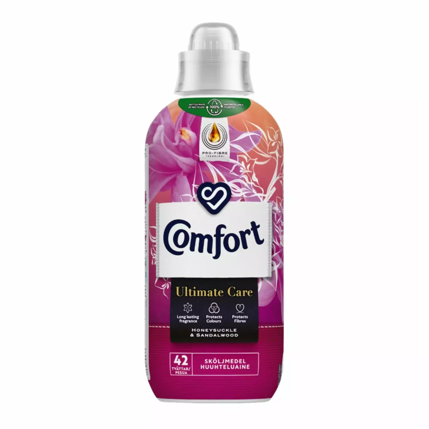 Comfort Honeysuckle & Sandalwood tekee pyykistä ihanan pehmeää ja raikkaan tuoksuista. Hellävarainen koostumus saa vaatteet, pyyhkeet ja lakanat tuntumaan ilmavilta ja miellyttäviltä. Houkutteleva kuusaman ja santelipuun tuoksu tuo pitkäkestoista raikkautta, joka säilyy koko päivän ajan.