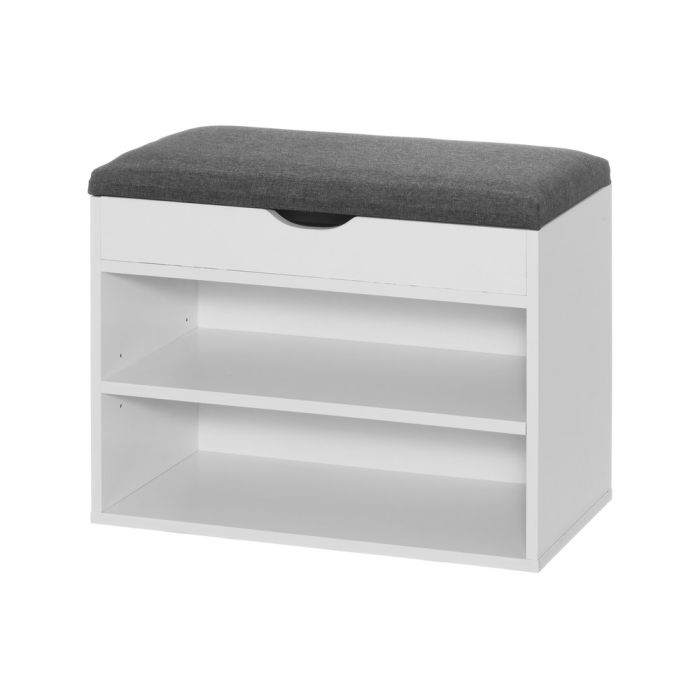 Käytännöllinen eteispenkki on erinomainen apu eteistilojen järjestyksen ylläpitoon. Pehmustetun penkin alla on säilytystilaa esimerkiksi asusteille tai muille tavaroille. Lisäksi penkissä on kaksi hyllyä, joiden kantavuus on 10 kg/hylly. Penkin kantavuus 70 kg.