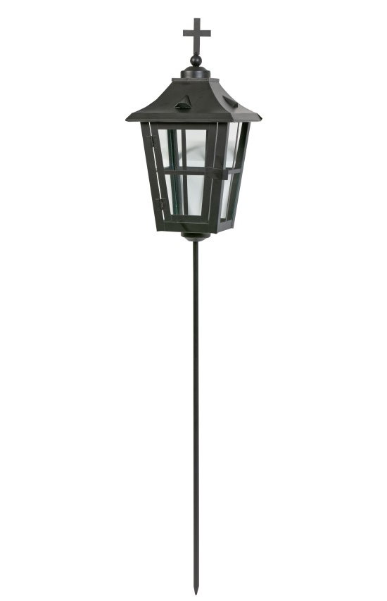 Kaunis ja ajattoman tyylikäs hautalyhty metallisella varrella, jonka avulla saat lyhdyn painettua siististi haudan läheisyyteen kiinni.