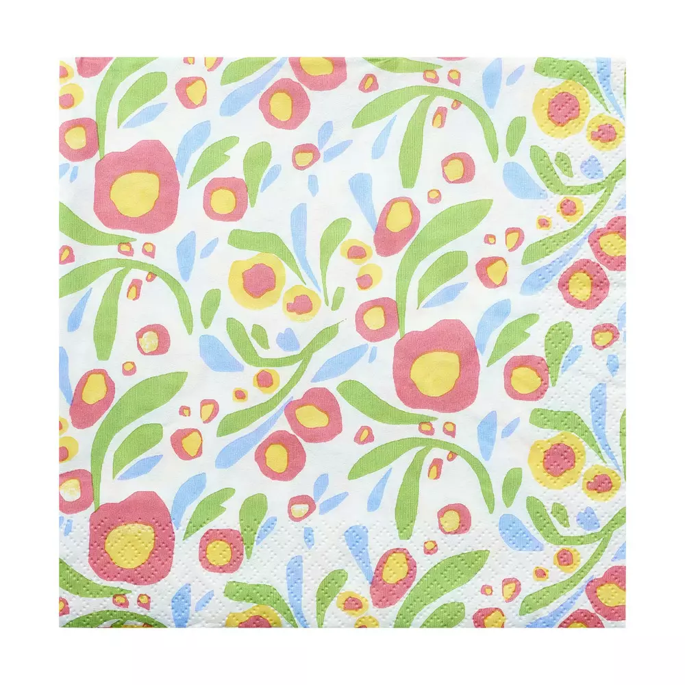 Matilda-kuosinen kaitaliina tuo kattaukseen väriä ja viimeistelee juhlapöydän ilmeen.