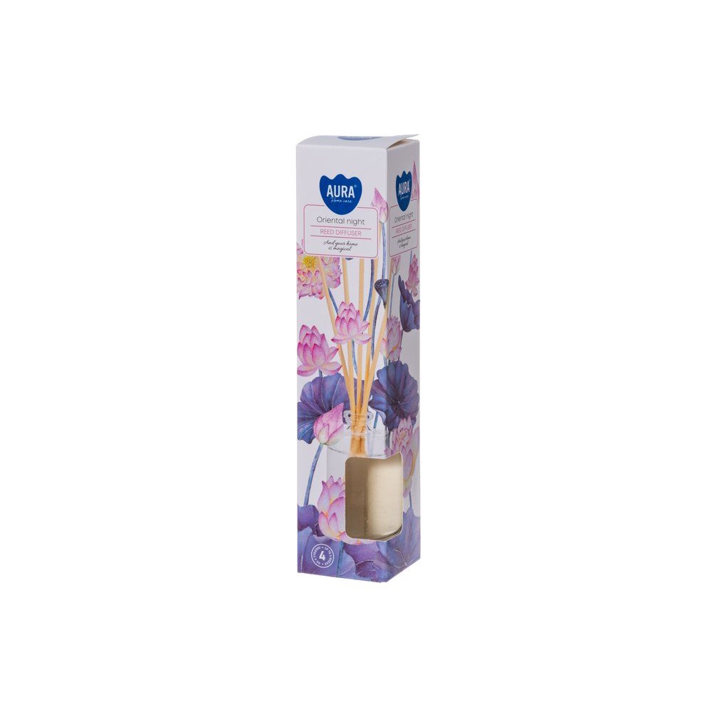 Kietoudu itämaisten öiden tunnelmaan. Pakkaus sisältää 5 bambutikkua, lasisen asetin ja 45 ml tuoksunestettä. Diffuuseri vapauttaa tuoksua tasaisesti ja sen voimakkuutta voi säätää lisäämällä tai vähentämällä tuoksutikkujen määrää. Pakkaus sisältää lasipullon (45 ml) ja viisi tuoksutikkua.