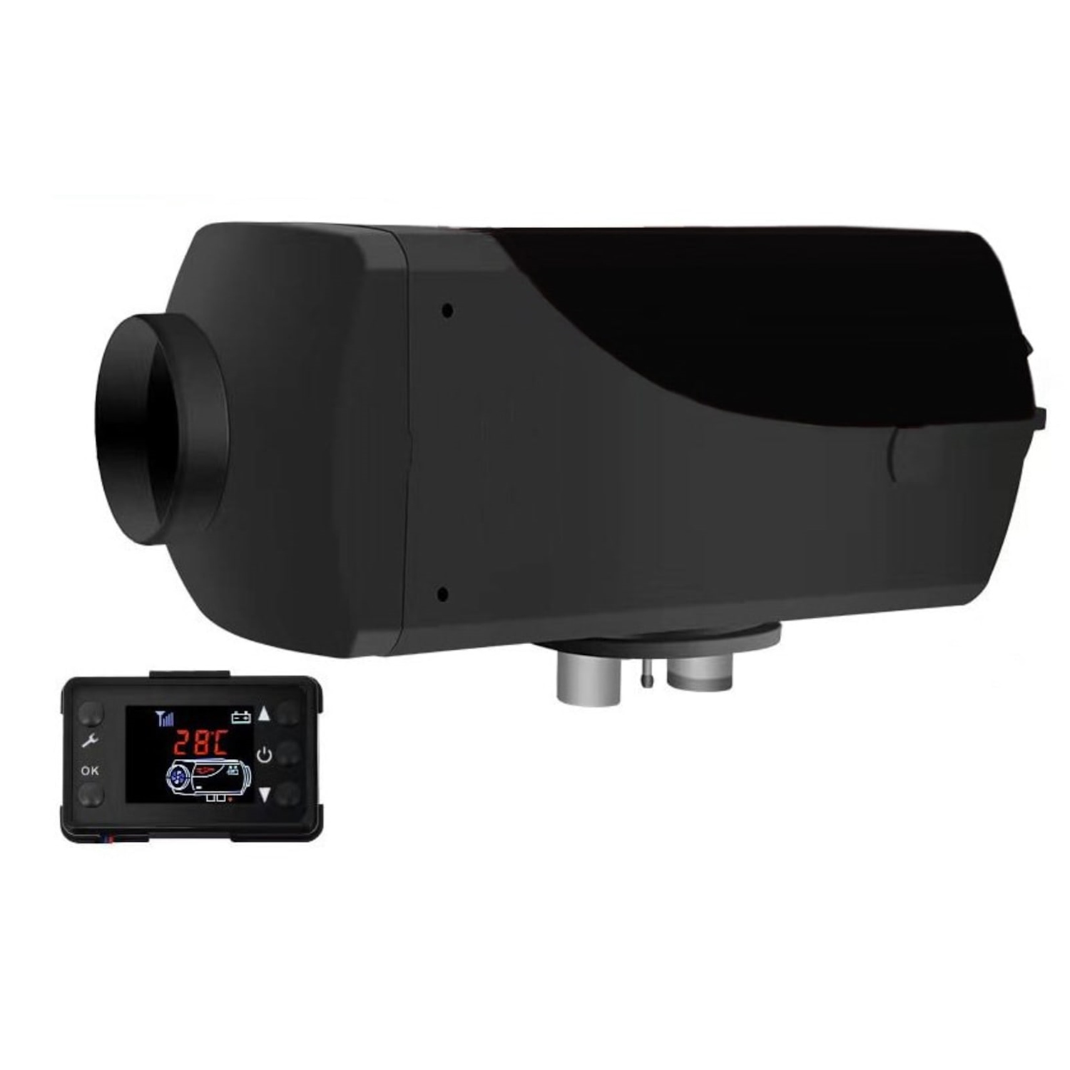 Lämmitinyksikkö ohjaintaululla, Kaukosäädin, Ilmansuodatin, Ilmaputken verkkosuoja, Äänenvaimennin, Sähköjohdot, Aluslevy, polttoainepumppu, polttoaineletkut, Ilman sisään- ja ulostuloletkut, Kiristimet ja ruuvit, 5 litran polttoainetankki, Pakoputki