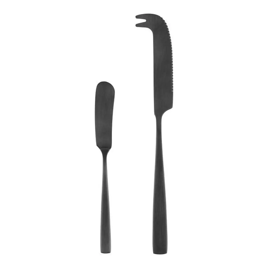 Tyylikäs musta veitsisetti koville juustoille ja levitteille. Valmistettu ruostumattomasta teräksestä. Konepesun kestävä.