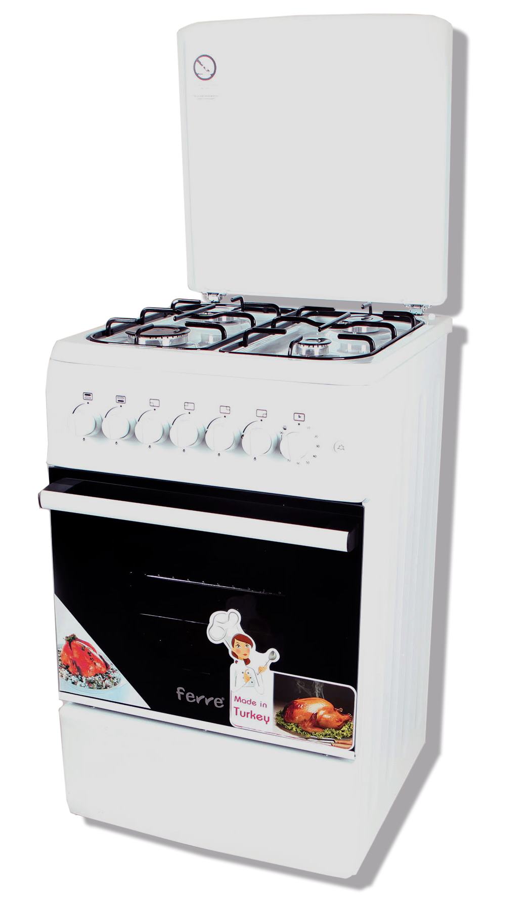Helppokäyttöinen sekä turvallinen, kaasulla toimiva liesi 4:llä polttimella ja uunilla on erinomainen valinta esimerkiksi mökkikäyttöön!