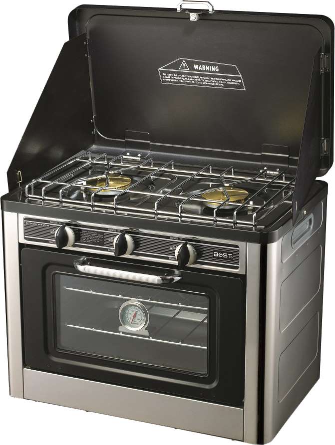 Kaasuliesi ja uuni näppärästi samassa kompaktissa paketissa. Laadukas pienoiskaasuliesi on kokonaan ruostumatonta terästä, kaikki polttimet ovat messinkisia. Keittolevyjen teho on 1600W ja uunin 600W. Uunin paistolämpötilan varmistaa ja energiatehokkuutta lisää oven tuplalasi. Pienoiskaasuliesi on luonnollisesti varustettu turvallisuutta lisäävällä liekinvartijalla.
