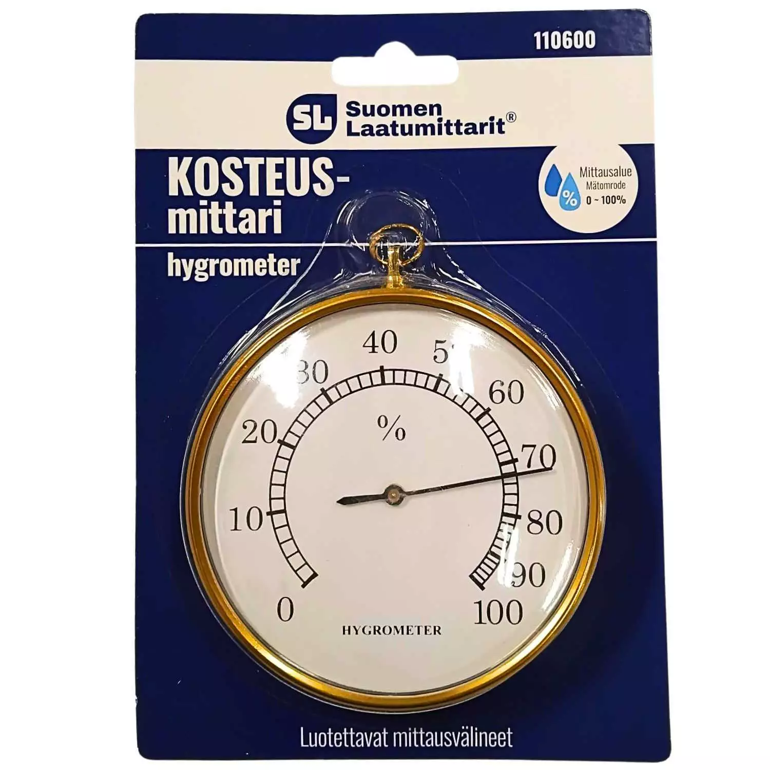 Huoneilman kosteusmittari mittaa suhteellisen kosteuden 0–100 % välillä. Ihanteellinen kosteus kotona on 40–60 %, ja tämän mittarin avulla voit helposti tarkkailla, pysyykö sisäilma sopivissa rajoissa. Liian kuiva tai kostea ilma voi vaikuttaa asumismukavuuteen ja rakennusten kuntoon. Ilmankosteuden säännöllinen seuranta auttaa ennaltaehkäisyssä.