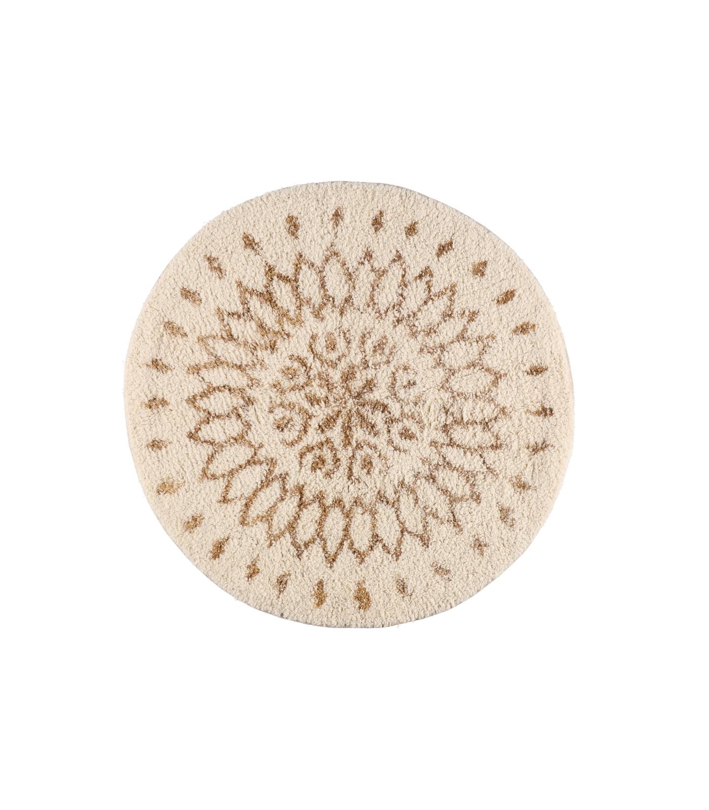 Pehmeä tuftattu kylpyhuoneenmatto kauniilla kullansävyisellä kuvioinnilla. Vesipesu 30 astetta.