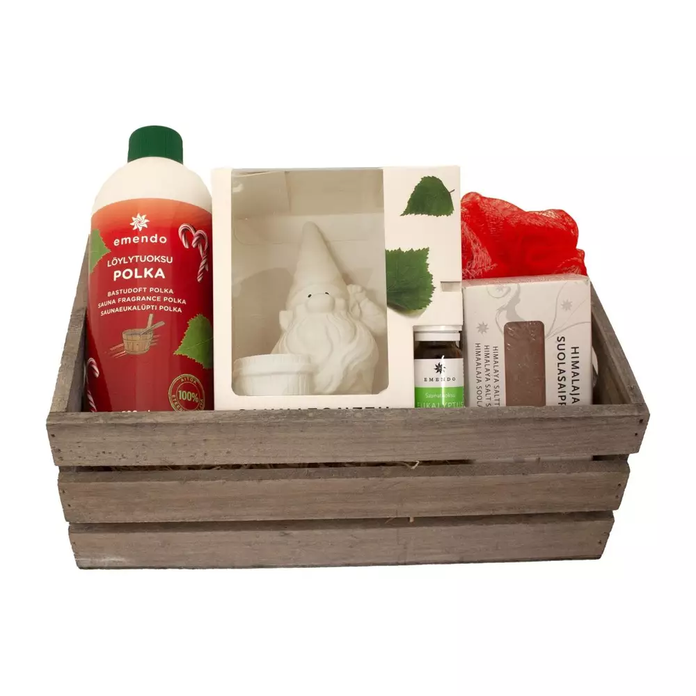 Emendo lahjakori on valmiiksi koottu kokonaisuus saunaan ja hemmotteluhetkiin. Setti sopii lahjaksi tai omaan käyttöön, kun haluat tuoda saunaan tuoksuja ja pehmeää tunnelmaa. Lahjakori sisältää huolella valitut tuotteet, jotka täydentävät toisiaan ja tekevät saunomisesta entistä miellyttävämmän kokemuksen.