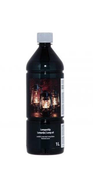 Laadukas lamppuöljy, kerosiinia. Pullo PET, korkki HDPE ja POM.