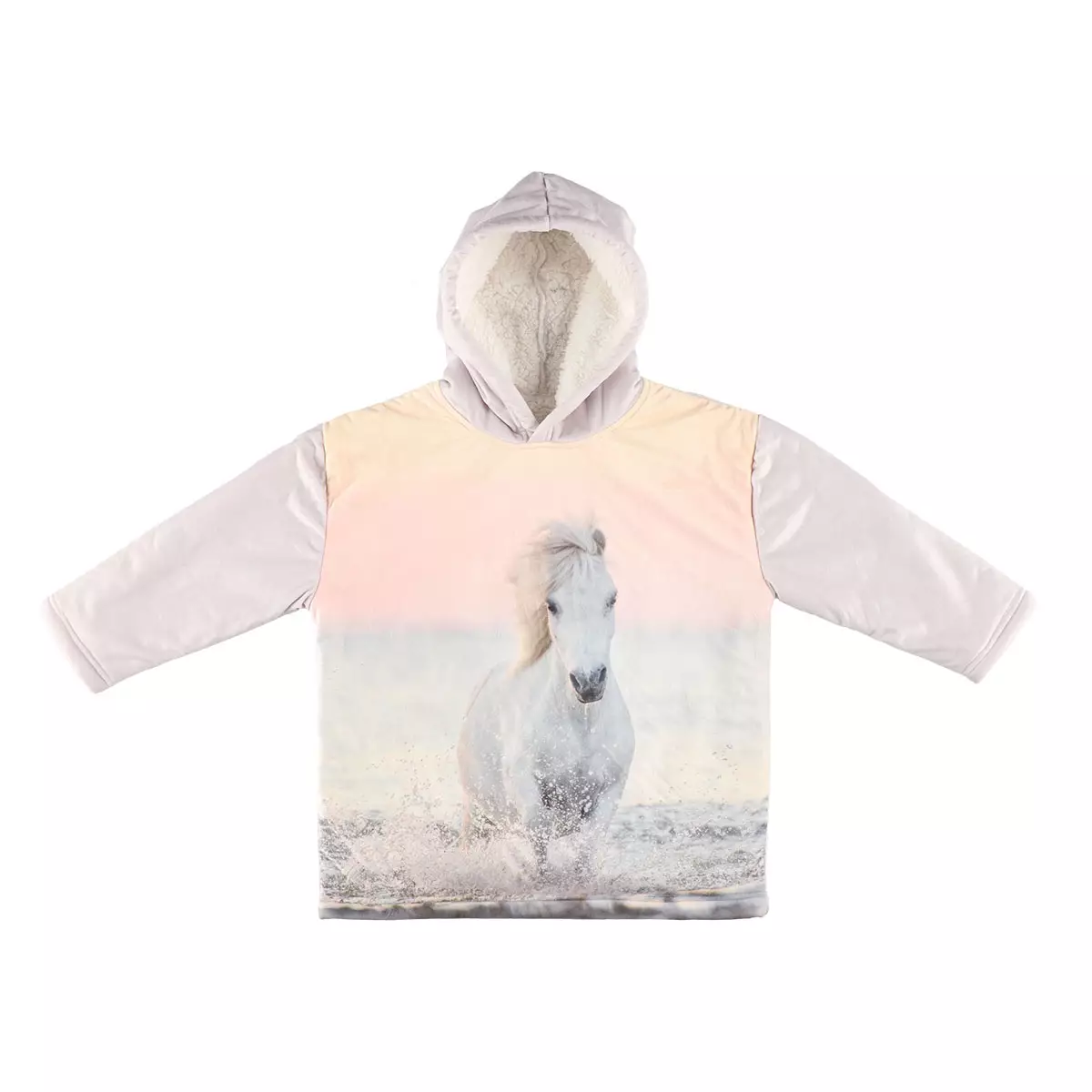 Ihanan pehmeä Pony Dreams -torkkuhuppari hurmaa kauniilla hevosenkuvalla ja tuo lämpöä viileisiin hetkiin. Hupparin sisäpuolella on superpehmeä karvavuori, joka tuntuu miellyttävältä päällä ja tekee siitä täydellisen valinnan rentoon oleskeluun, elokuvailtoihin tai viikonloppujen rauhallisiin hetkiin. Reilu malli antaa hyvin liikkumatilaa ja lisää käyttömukavuutta.