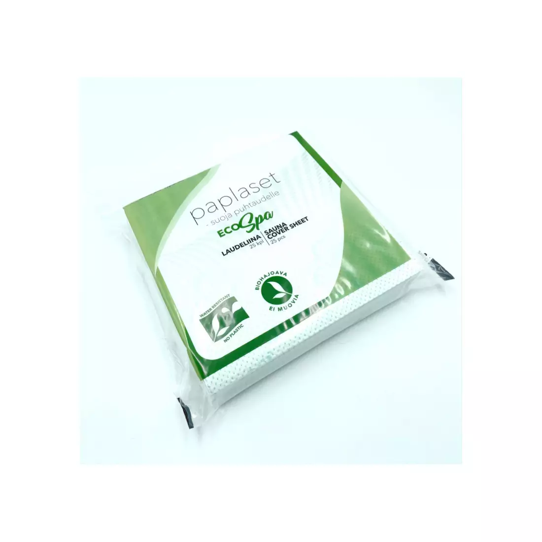 Joutsenmerkin kriteerit täyttävä Paplaset Eco Spa on täysin puhtaasta ensikuidusta valmistettu 2-kertainen, muoviton, vettähylkivä ja kompostoitava laudeliina.