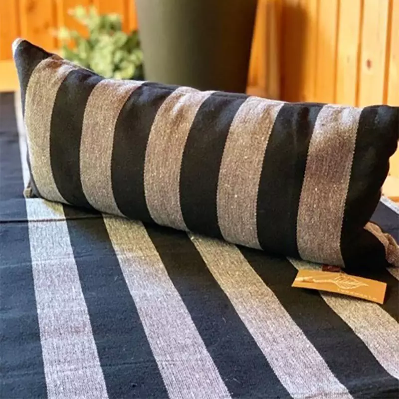 Musta ja pellavanvärinen tasaraita antaa lauteille tyylikkään ja ajattoman ilmeen. Selkeä raitakuosi sopii monenlaiseen saunaan ja tuo sisustukseen raikkaan kontrastin.