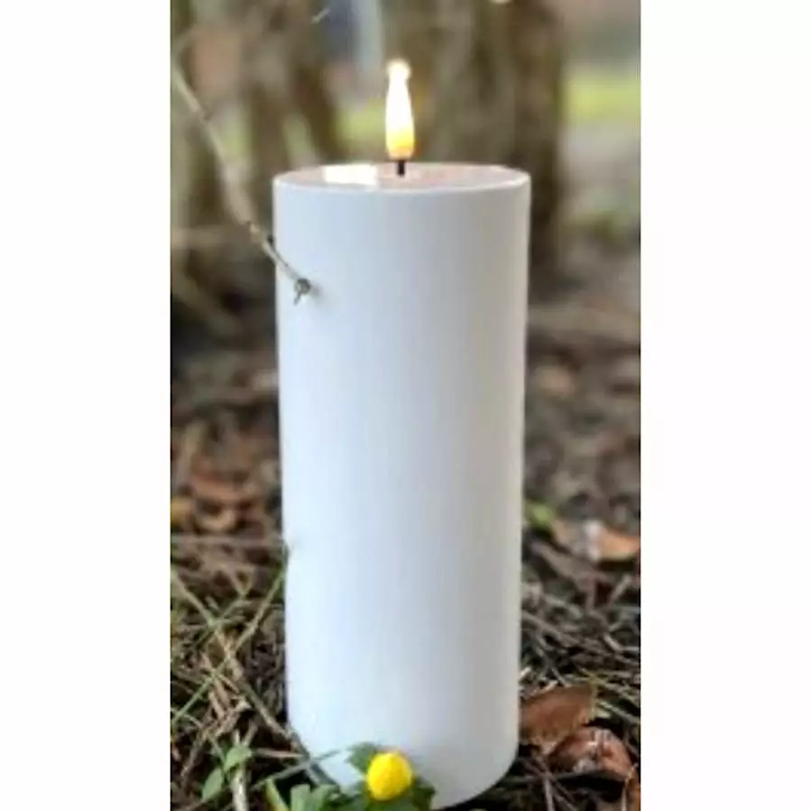 Soveltuu käytettäväksi myös sisätiloissa. Valkoinen kynttilän runko ja erityinen 3D eläväliekkinen valo-osa takaa täysin aidonnäköisen valon.