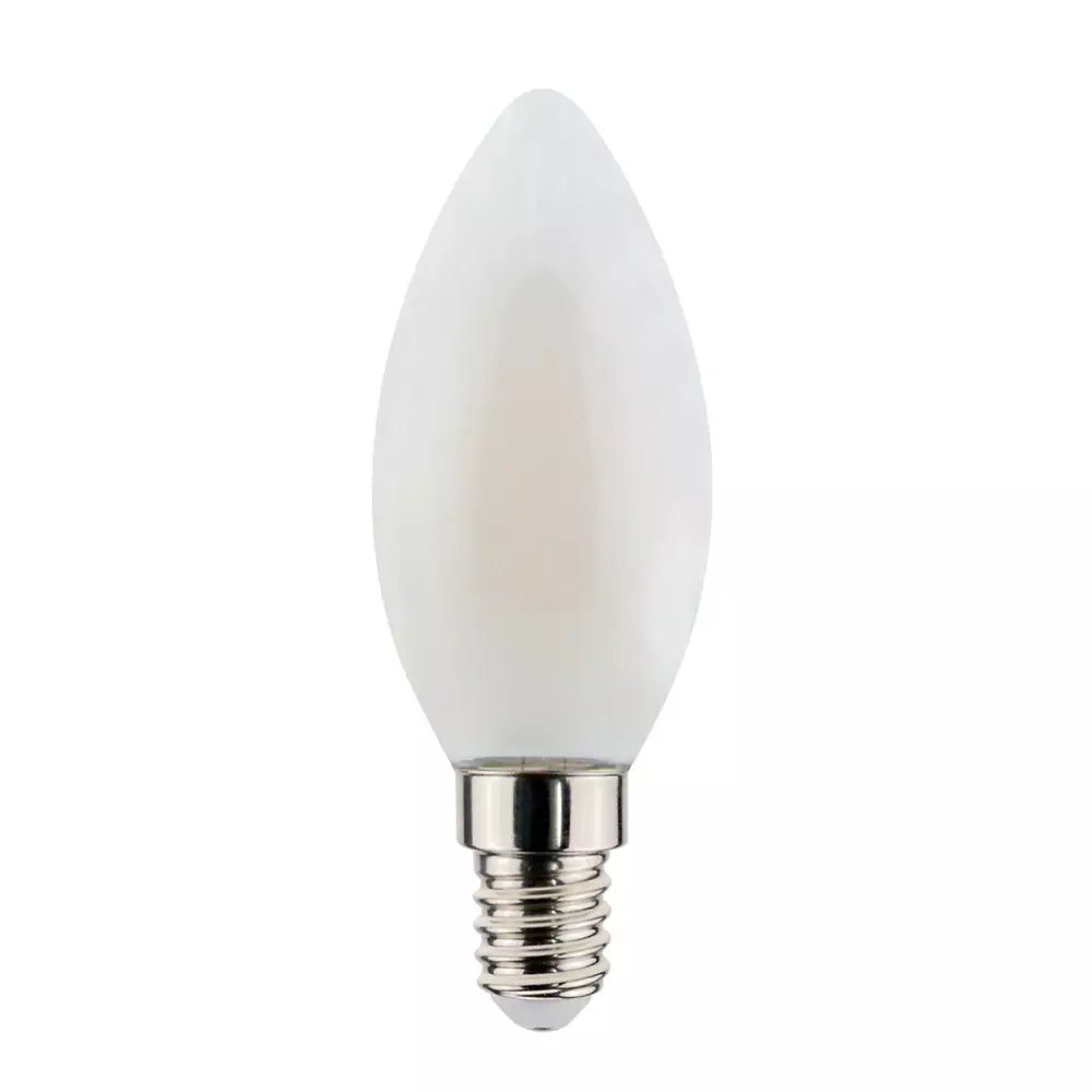 Airam Oiva C35 on opaali kynttiläkupuinen LED-lamppu, joka tuottaa miellyttävää 3000 K lämmintä valkoista valoa. 360° valonjako levittää valon tasaisesti ympärilleen, ja opaali kupu antaa häikäisemättömän ja pehmeän valaistuksen.