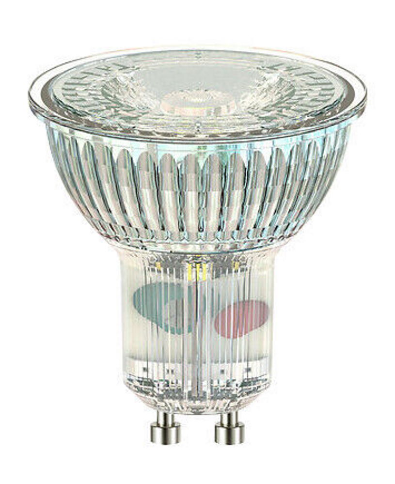 Kirkas PAR16-kohdekupuinen led-lamppu 4W 4000K GU10 410lm 750cd 36D (345lm/90D) 15000h 50x52mm, kupu lasia, blisterpakkaus. Taajuus ~50/60Hz.