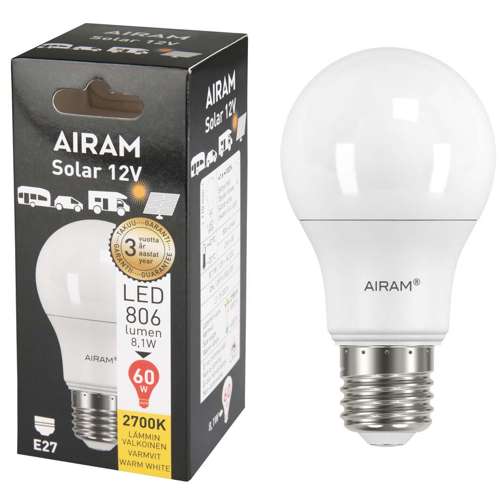 Aurinkoenergian käyttö on kasvussa ja silloin valaistukseen tarvitaan 12V-lamppuja. Tyypillisiä käyttökohteita ovat kesämökit, matkailuautot ja veneet. Lamput toimivat 12V AC/DC-jännitteillä. Varmista 12 V lamppujen ja muuntajan yhteensopivuus, jos käytössä.