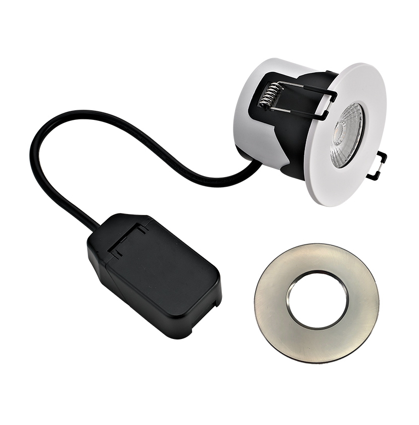 Pakkaus sisältää spottivaloon sekä valkoisen että teräksen väriset vaihdettavat kehykset. Liitäntälaite on valaisimeen sisäänrakennettuna. Pikaliittimet sijaitsevat kytkentäkotelossa. Valon värilämpötila 3000/4000 K on vaihdettavissa valaisimen takana sijaitsevasta kytkimestä.