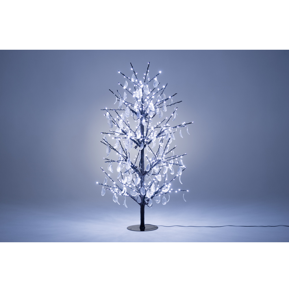 Näyttävä valopuu on upea lisä talvikauden koristeluun. Puun oksia koristavat kauniit muovikristallit ja 482 kpl valkoista lediä. Puulla on korkeutta 180 cm. Muuntaja 24V, 5 m liitäntäjohto. Suojausluokka IP44.