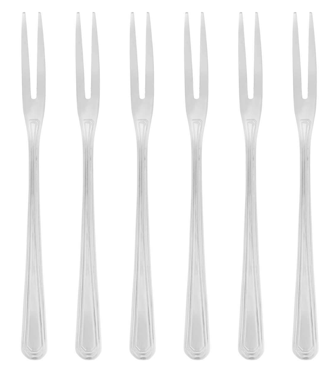 Ruostumattomasta teräksestä valmistetut, konepesunkestävät leikkelehaarukat. 13,5 cm, vahvuus 2,5 mm. Pakkauksessa 6kpl leikkelehaarukoita.