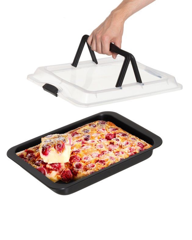 Kätevä piirakkavuoka tarttumattomalla pinnoitteella ja tukevalla muovikannella. Kahvallisen kannen ansiosta piirakka ja leivonnaiset on helppo napata mukaan. Käytä muovisia tai puisia keittiövälineitä, jotka eivät naarmuta pinnoitetta. Helppo puhdistaa. Vetoisuus 3,45 L. Lämmönkesto max. 220 astetta. Käsinpesu.