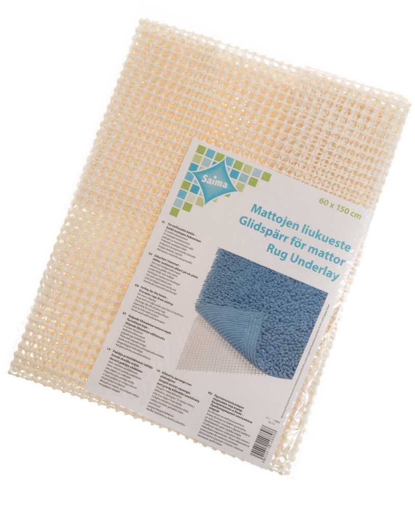 Nyt loppui mattojen liukuminen! Saima mattojen liukuesteellä saat matot tiukast lattiaan kiinni estäen niiden liukumisen ja aiheuttaen vaaratilanteet. 60x 150cm kokoinen liukueste on 30% polyesteria ja 70% vinyyliä joten se ei jätä jälkiä lattiaan eikä vahingoita maton kuituja.