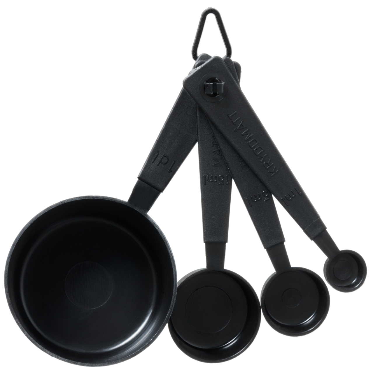 Kätevä mittasarja sisältää mitat: 1 dl, 15 ml, 5 ml ja 1 ml. Mitat 1 dl, 15 ml, 5 ml ja 1 ml.