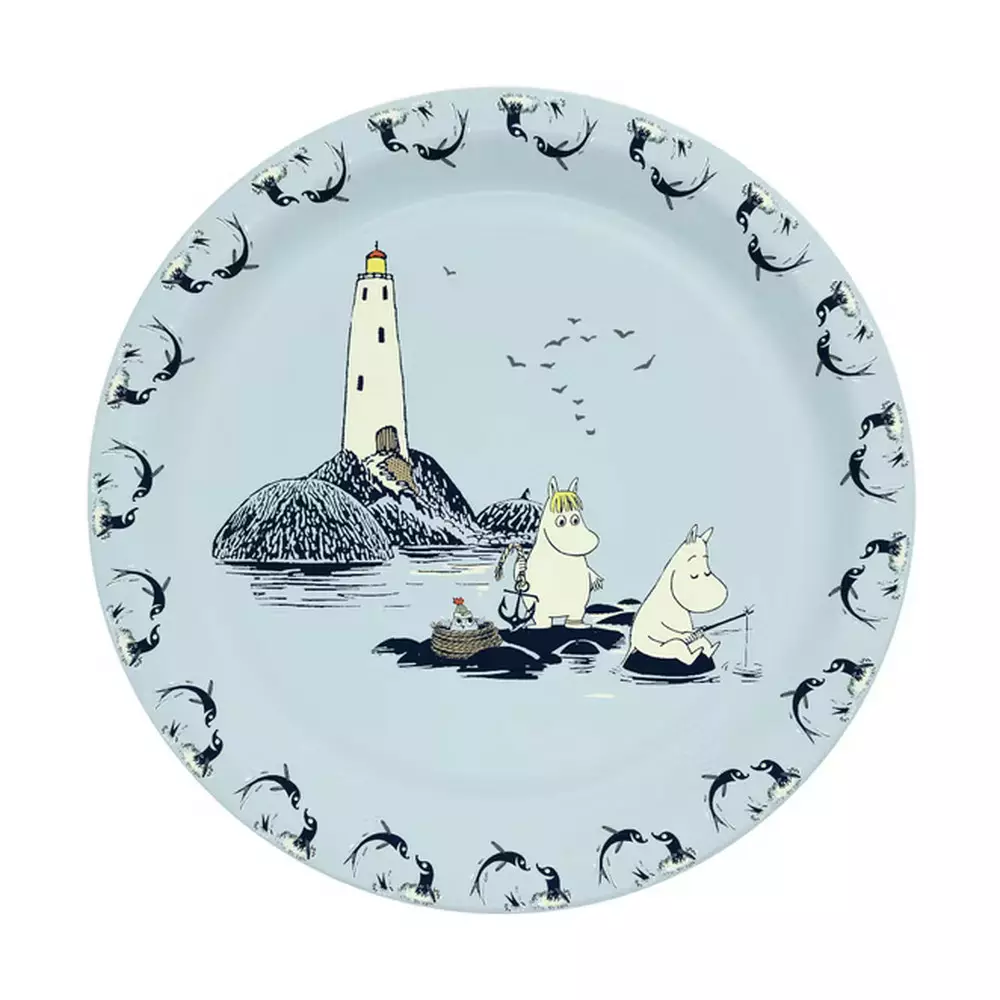 Muumit ja meri -kuosinen kartonkipikari tuo kattaukseen tuttua muumitunnelmaa.