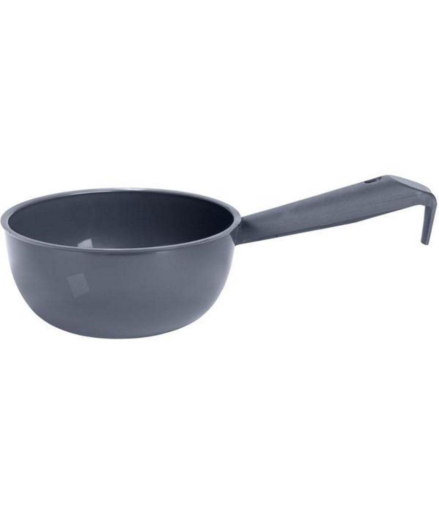 Tukeva kädensija ja leveä kuuppa auttavat annostelussa. Kädensijassa valettu koukku jonka avulla saat ripustettua esimerkiksi saavin reunaan roikkumaan.